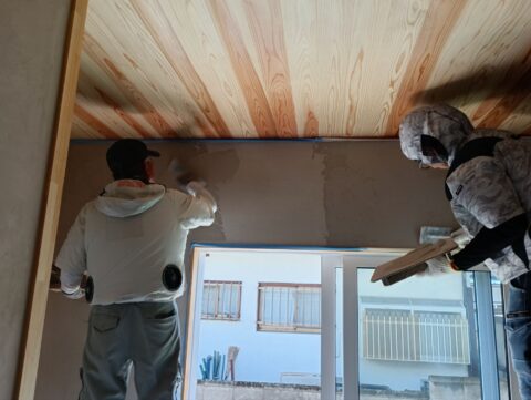 ボードの継ぎ目等をパテを塗って平坦にします。